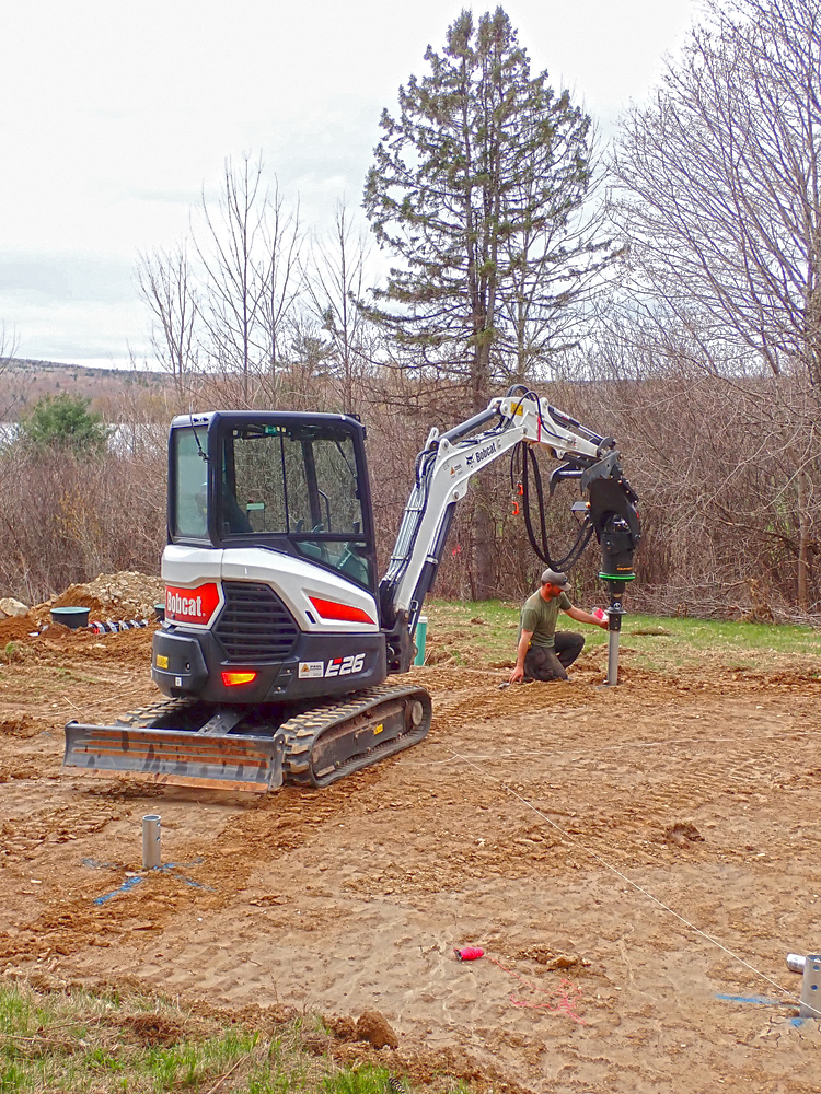 Lots of activity on the site today. The septic system is being covered and the screw piles installed.