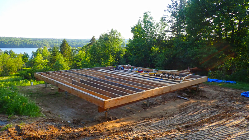 The well and septic trenches were filled in last week, so after a few days of wet weather, I got back to construction. The rim joists were put into place and when diagonal measurement were taken, they were within a few millimeters. The floor is still square.🎉