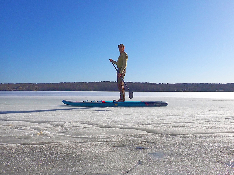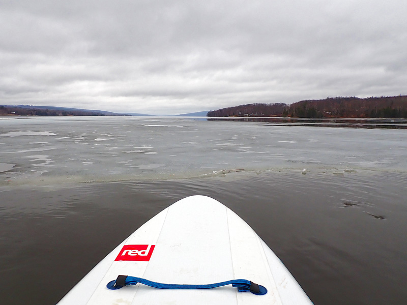 With the river open and a diminished wind, it was time to get out for a paddle. Still, there were a few ice sheets to skirt around.