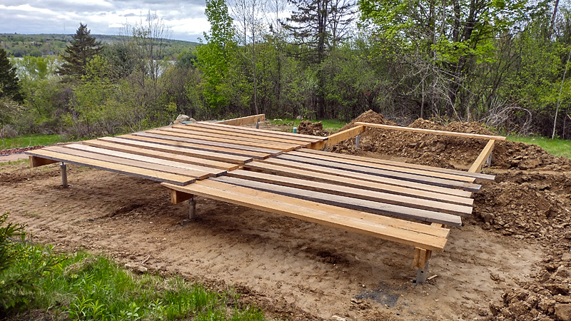 Floor construction has been a slog. The inconsistent dimensions of the rough lumber for the floor joists has meant constant measuring and reconfirming before cutting and fixing everything in place.