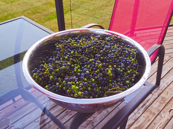 In early September, we spent an evening harvesting wild grapes from an accessible patch.