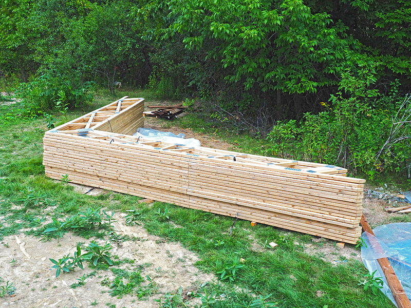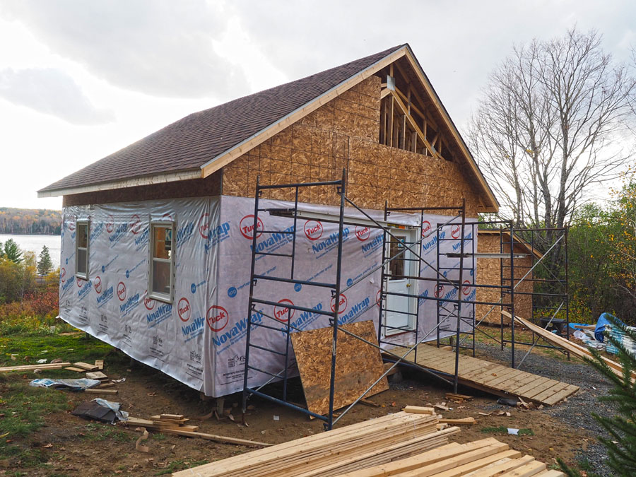 Tomorrow, the contractor is back on site to start building the gable ends, finish the sheathing, apply the building wrap and install the windows & doors.