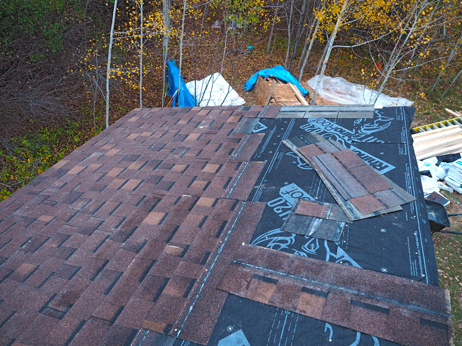 The contractors finished the roof by the end of last week. They will be back to close the gable ends and install windows & doors soon.